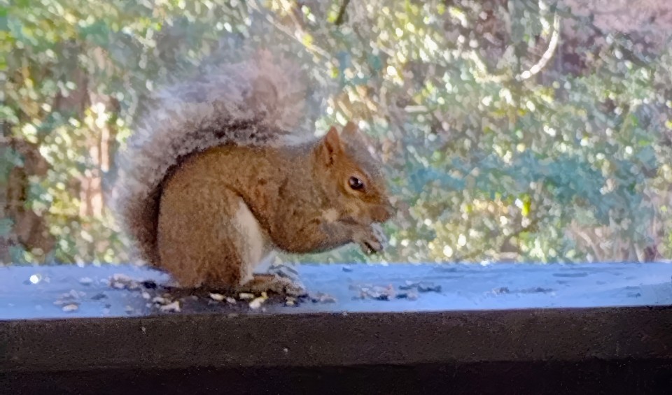 The upper age limit for Grey squirrels in the wild is probably around nine years, although tracking and observational data suggest that few individuals exceed four or five, especially males. Indeed, population studies conducted by John Gurnell in southern England during the early 1980s found females here lived longer on average than males – typically four to five years, and up to seven, compared with two to three years, and up to five, for males. There are, however, unconfirmed reports of animals surpassing this figure by a considerable margin. In February 2026, Verna Slade sent me a photograph of a squirrel she has named "Strawberry", which first began visiting her property in Atlanta, Georgia, as a juvenile during August 2000. According to Verna, she has developed a notably trusting relationship with Strawberry and numerous other squirrels that visit her property most days to feed. Despite being nearly 27 years old at the time of writing, Strawberry reportedly remains in good condition and, to my knowledge, currently represents the oldest unconfirmed record for the species. The oldest confirmed captive specimen on record was an individual of unknown sex held at Racine Zoo, Wisconsin, which survived to 23 years and 6 months.