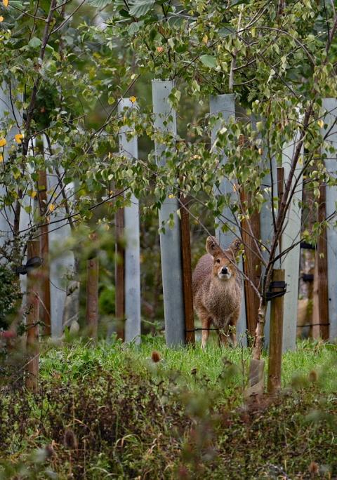 We have seen both in the UK and South Korea that water deer can and do adapt to habitat change. In Korea they can be found close to and sometimes even in cities, while in Britain they have readily taken to farmland many kilometres from coastal marshes and some conservations schemes may promote this. The practice of set-aside in England, for example, where land owners either leave field margins to grow wild or sow wildflower mixes in an effort to support nationally declining populations of birds and insects, seems to be beneficial to water deer, which are regularly found resting and feeding in these margins. Similarly, the Bedford & Milton Keynes Waterway Park, part of the Forest of Martson Vale expansion project that aims to create a 25 km (16 mile) stretch of woodland connecting Bedford to Milton Keynes in Bedfordshire is likely to benefit the water deer and potentially aid their spread within the county. Of course, in many cases disturbance by humans using such areas can deter and displace deer, but we do know that water deer can adapt to at least moderate disturbance in Britain and this is already evident in the wild in parts of Bedfordshire. In South Korea during 2017, for example, Seung-Hun Son and his co-workers found that even intensive thinning of a Japanese larch plantation didn't have a significant impact on its use by water deer. This means that it's difficult to predict how water deer will respond to disturbance or change, so it's important to build in mitigation at the design phase of developments that cut into the species' habitat.