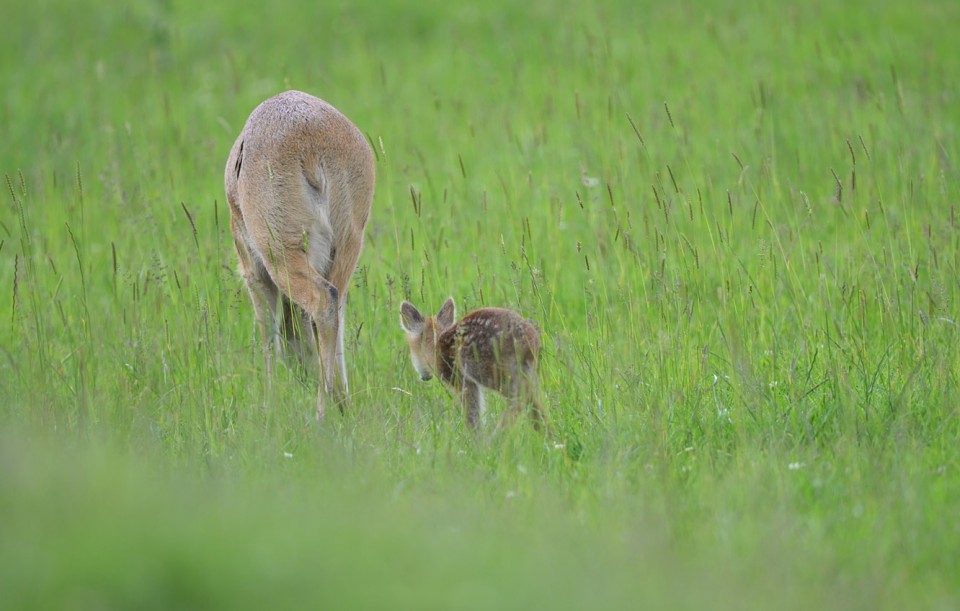 Alongside dereliction, it is interesting to note that water deer seem less devoted mothers than many other cervids. While studying water deer at Poyang National Nature Reserve in Jiangxi during 1988 and 1989, Li-xing Sun observed that females with fawns were no more vigilant than those without and, at Whipsnade, Stadler found that while dams were slightly more vigilant the difference was not significant. Likewise, in an article to Deer in 1988, Stadler noted that during his study they caught and measured fawns, many of which would utter "a loud scream of varying intensity", but unlike mothers of roe (Capreolus capreolus) or muntjac (Muntiacus reevesi), water deer dams never approached a screaming fawn.