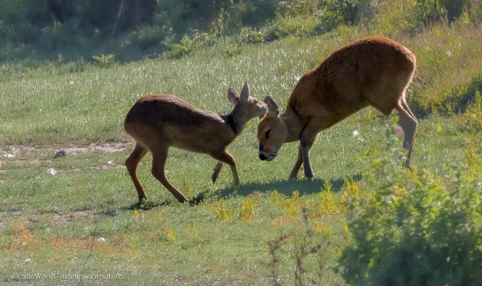 Obviously, it's impossible to confirm whether the buck in either Sue or the Duke's encounters were the father, but I've observed fawns approach bucks both at Woburn and Whipsnade and in the wild in Buckinghamshire, and on only one occasion did the buck lick the fawn, perhaps suggesting such affiliative behaviour is uncommon. Indeed, in this case the buck was closely following their mother, showing what appeared to be mild sexual interest. In my diary on 22nd June 2024, I described: